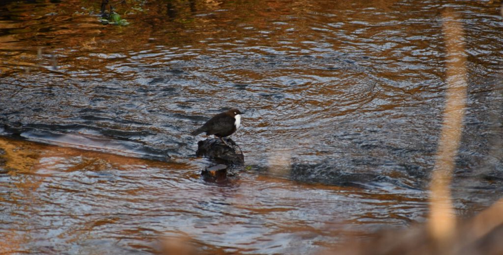 Regelmäßiger Besuch der Wasseramsel. Hier auf einem der eingebauten Stämme.
