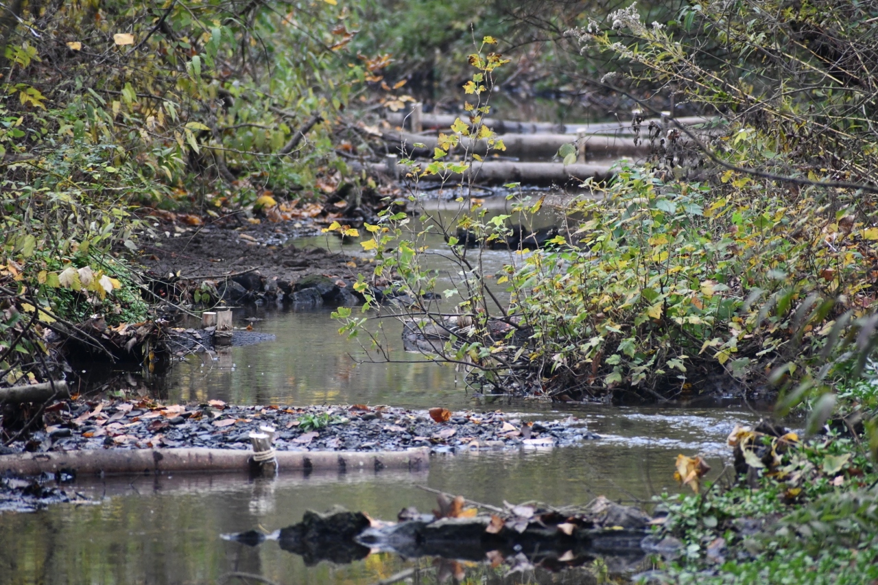 Entgegen der ursprünglichen Planung wurde auf den Einbau von Strukturen im unteren Teil der Strecke verzichtet. Die Feinsediment-/Schlammablagerungen sind in diesem Abschnitt aus verschiedenen Gründen (temporäre Stauwurzel des Biberdamms an der Mündung bzw. Rückstaueffekte aus der Ilme, begünstigt durch Stauendes Holz und den geringen Durchfluss) auf mittlerweile ca. 30 bis 40 cm Stärke über der Kiessohle angewachsen. Um hier einen Effekt wie oberstrom zu erzielen, hätten Stämme mit wesentlich größerem Durchmesser bzw. grundsätzlich höhere Strukturen angewendet werden müssen.
